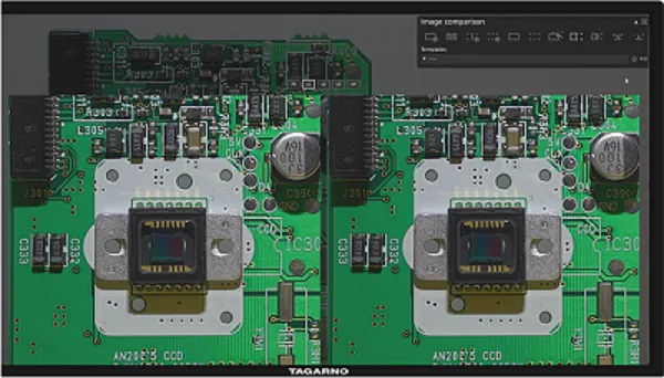 Улучшите контроль с помощью программных продуктов, которые вы можете добавить в свой цифровой микроскоп. TAGARNO разрабатывает решения для цифрового микроскопа, которые помогают сотрудникам контроля качества выполнять свою работу проще и точнее, устраняя субъективность человеческого зрения. Программа сравнение изображений является одним из программных продуктов, которые специалисты TAGARNO разработали для электроники, где оператор может сравнить исследуемый образец с эталоном.