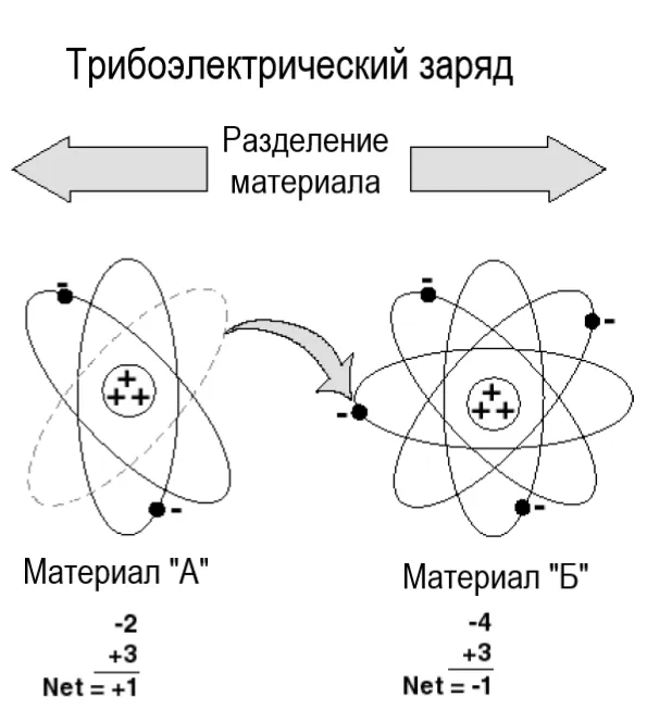 Рис. 2. Трибоэлектрический заряд – разделение.