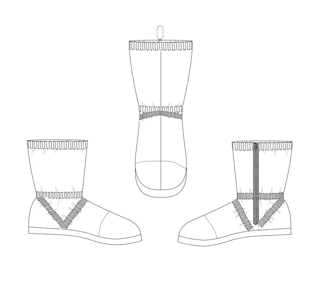В области щиколотки, предусмотрена вшитая эластичная тесьма шириной 2 см, для плотного прилегания к ноге. Так же по объему щиколотки предусмотрен съемный ремешок на эластичной ленте, который имеет 2 положения фиксации.