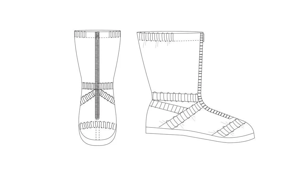 Верх бахил регулируется по объему ноги при помощи круглой эластичной тесьмы с внешним фиксатором.