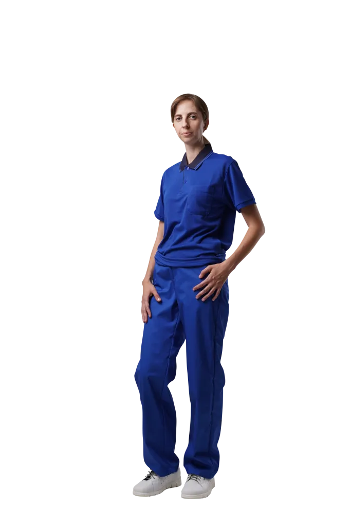 Трикотажная антистатическая футболка поло W371-126 унисекс с короткими рукавами, укороченной застежкой на кнопки и отделочным воротником предназначена для работы в защищенных ESD-зонах.