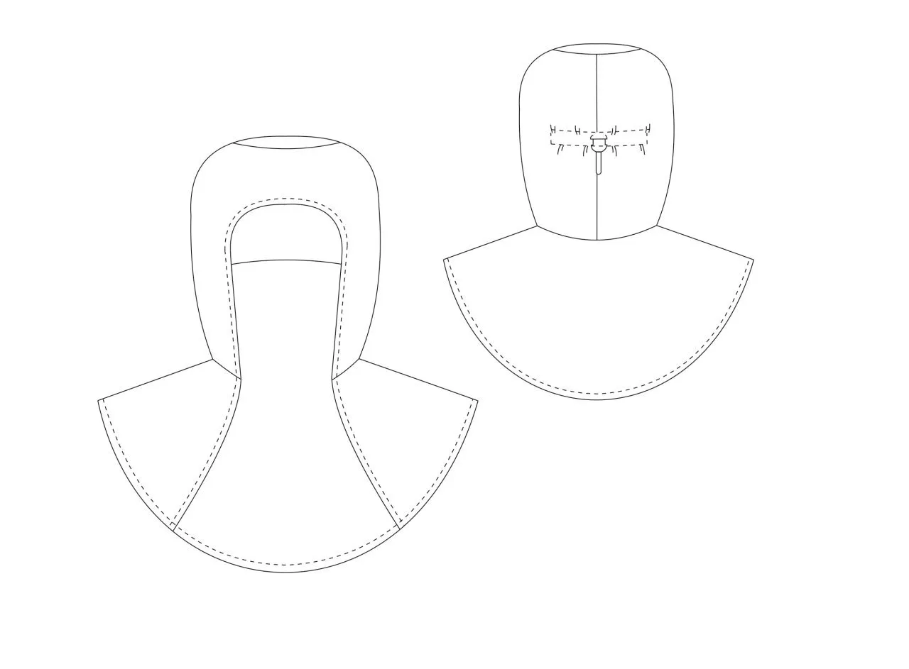 Шлем–маска М-146Ф – головной убор, плотно облегающий голову и полностью закрывающий лицо ниже глаз. Пелерина закрывает плечи, верхнюю часть спины, переда. Впереди к шлему пришита маска из фильтра с носовым фиксатором. Для достижения прилегания к голове шлем фиксируется на затылочной части шнуром и фиксатором.