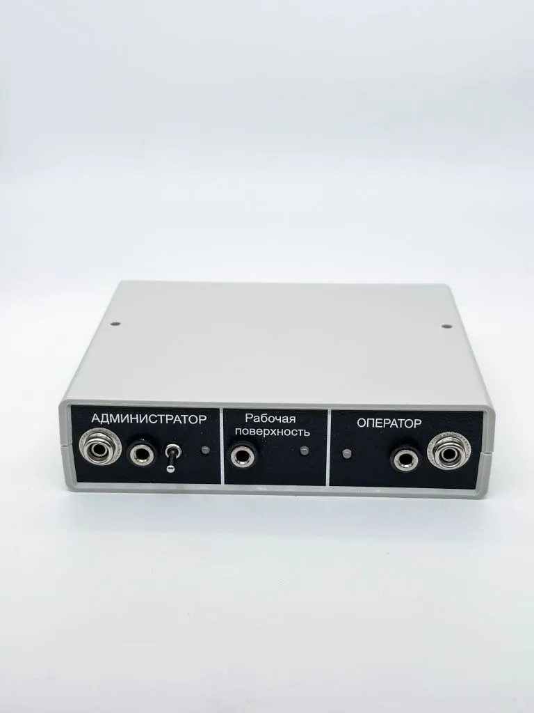 Прибор имеет три входа: два входа для подключения антистатических браслетов оператора (монтажника) и администратора, а третий вход для подключения антистатического рабочего пространства (коврика).