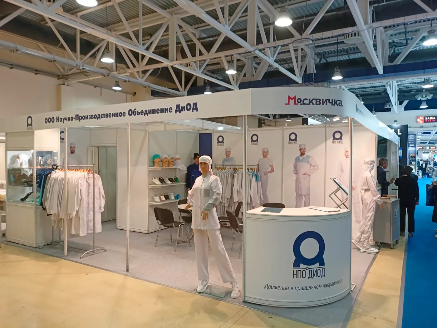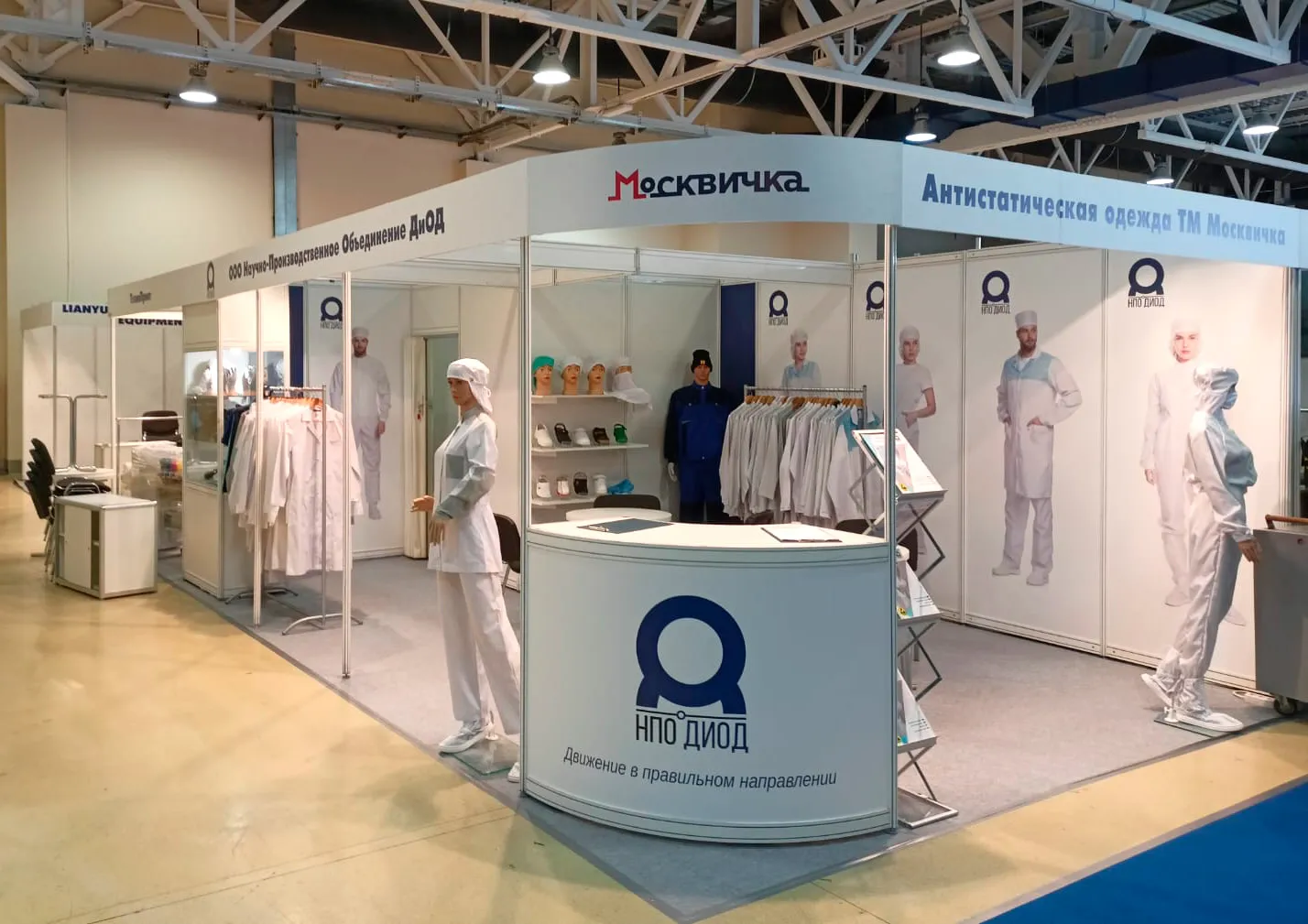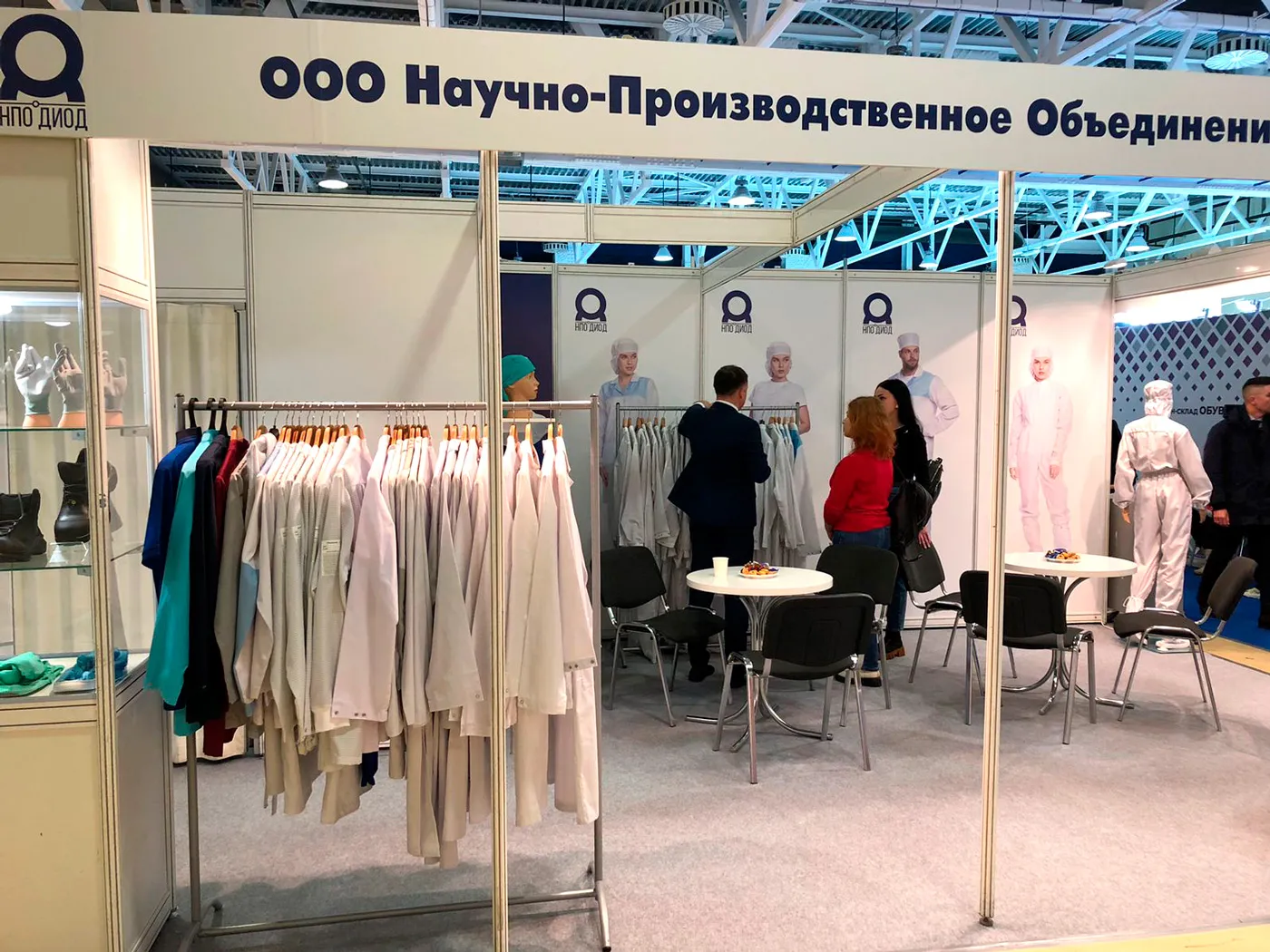 Наша компания продемонстрировала весь ассортимент одежды для чистых помещений и антистатической одежды нашего собственного бренда Москвичка, как новинки, так и популярные модели. Современные модели комбинезонов, костюмов, халатов, брюк, головных уборов и бахил из различных видов тканей и цветов Москвичка пользовались популярностью среди посетителей выставки. Особенно живой интерес вызвала наша экспозиция по антистатике, поскольку эта тема на данной выставке еще не поднималась. А спрос у заказчиков на нее был, поскольку стояла проблема по защите от статического электричества.