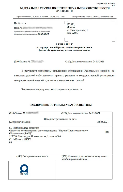 Спешим поделиться хорошей новостью: наш товарный знак НПО ДиОД зарегистрирован!